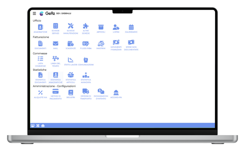 GeAz offre un sistema di fatturazione elettronica basato su Cloud, accessibile ovunque tu sia attraverso dispositivi connessi a internet e dotati di un browser moderno come Chrome, Firefox, Opera o Safari. Utilizzabile in simultanea da più utenti e sedi diverse, GeAz elimina la necessità di installare software o eseguire aggiornamenti sui tuoi dispositivi, come PC, tablet o smartphone: gestiamo noi ogni aspetto tecnico. Con GeAz scopri la libertà di gestire la tua fatturazione online.