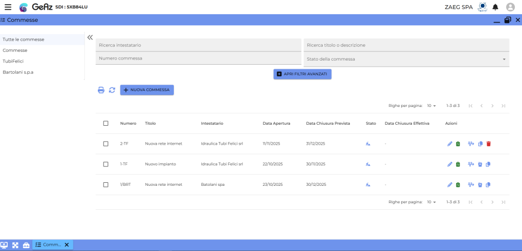 Filtra per cliente, data, stato o numero commessa. Trova immediatamente ciò che cerchi grazie ai potenti filtri di ricerca.
