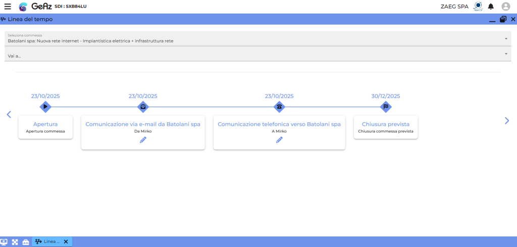 La funzionalità più innovativa di GeAz Commesse. Visualizza in ordine cronologico tutto ciò che accade in un progetto.
